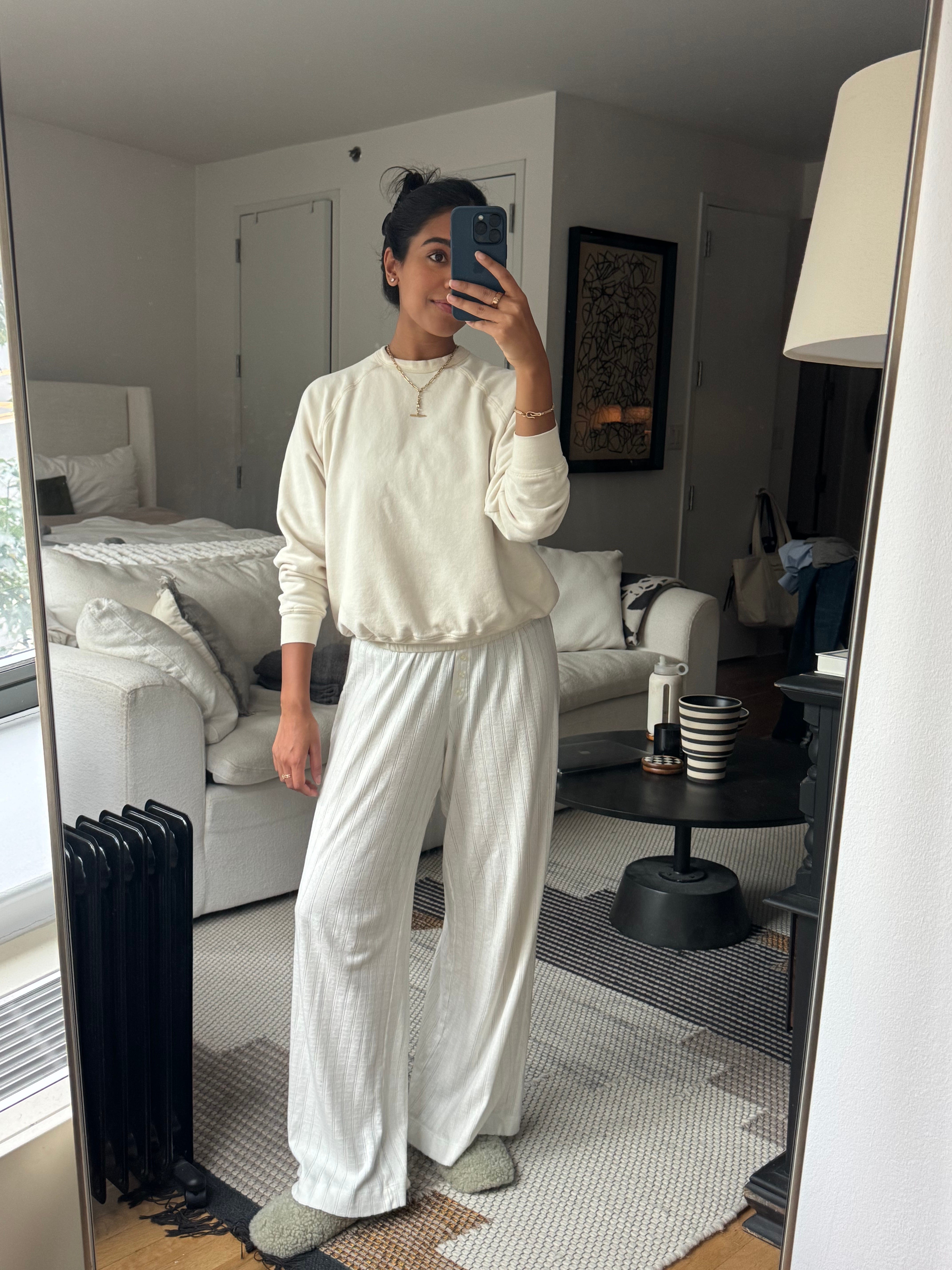 I am neither an East Side Angeleno nor a cool mom, but I have adopted their unofficial uniform! These to me feel quintessentially LA—they come with the right vintage-y details (perfect stitching, subtle distressing on the hems, their signature split cuff) and instead of being fleece-y like the Mother sweatshirt, they’re made of washed terry, which makes them lighter and better for temps year-round. I own several styles from the brand—this for something more oversized over leggings, this for something more fitted to wear out with jeans, but the OG (pictured) is my most frequently worn and the best place to start (I’m in the 0). I grab this when I want something cozy, but not too warm to the point that I might overheat. It’s perfect for summer nights, travel days, to sleep in, etc. I got mine as a matching set (this is my favorite version of their sweatpants), but they’re great to mix as separates, and I love the embroidery options too. (While you’re there, don’t miss their sweatshirt socks, made of the same material but for your toes!)