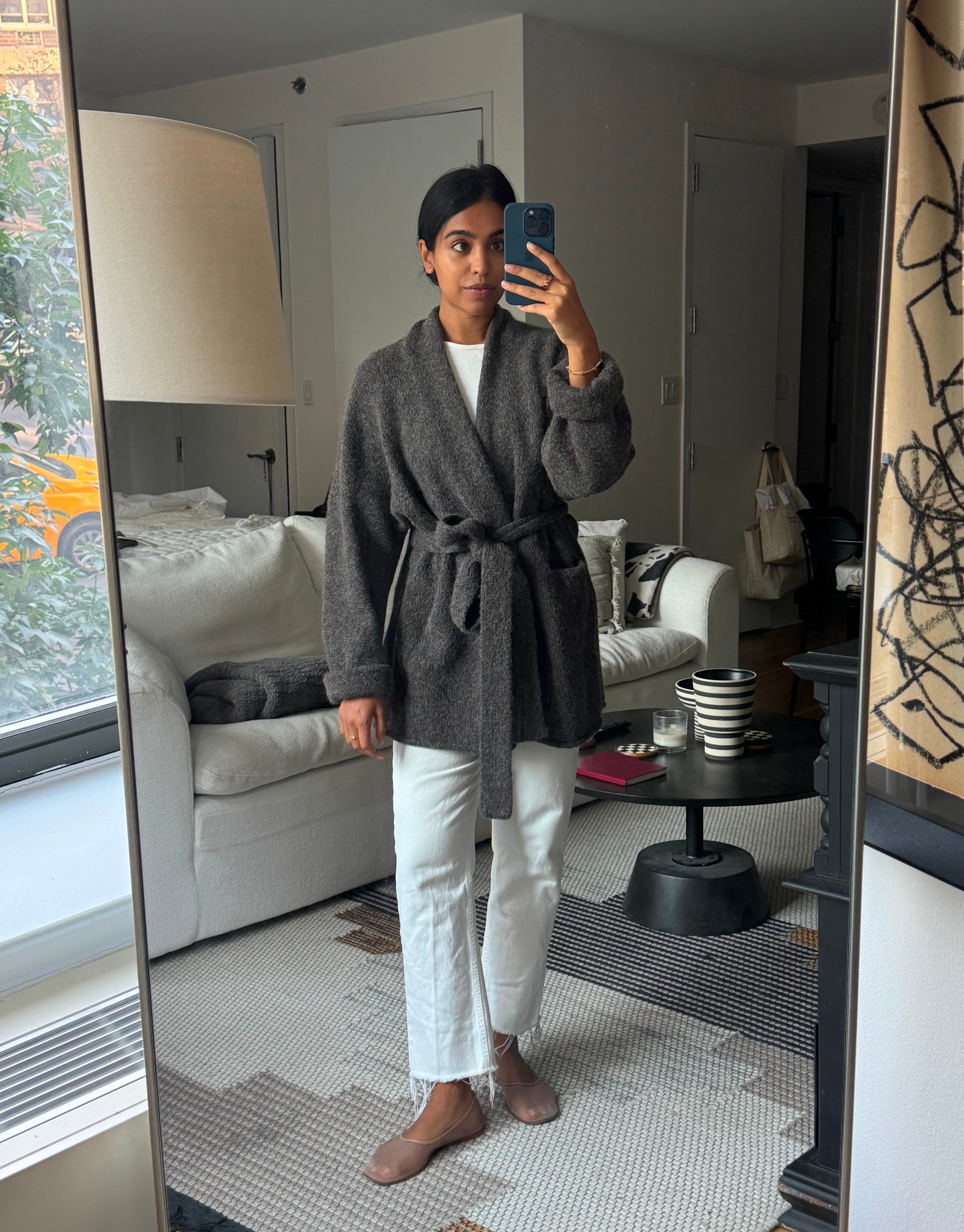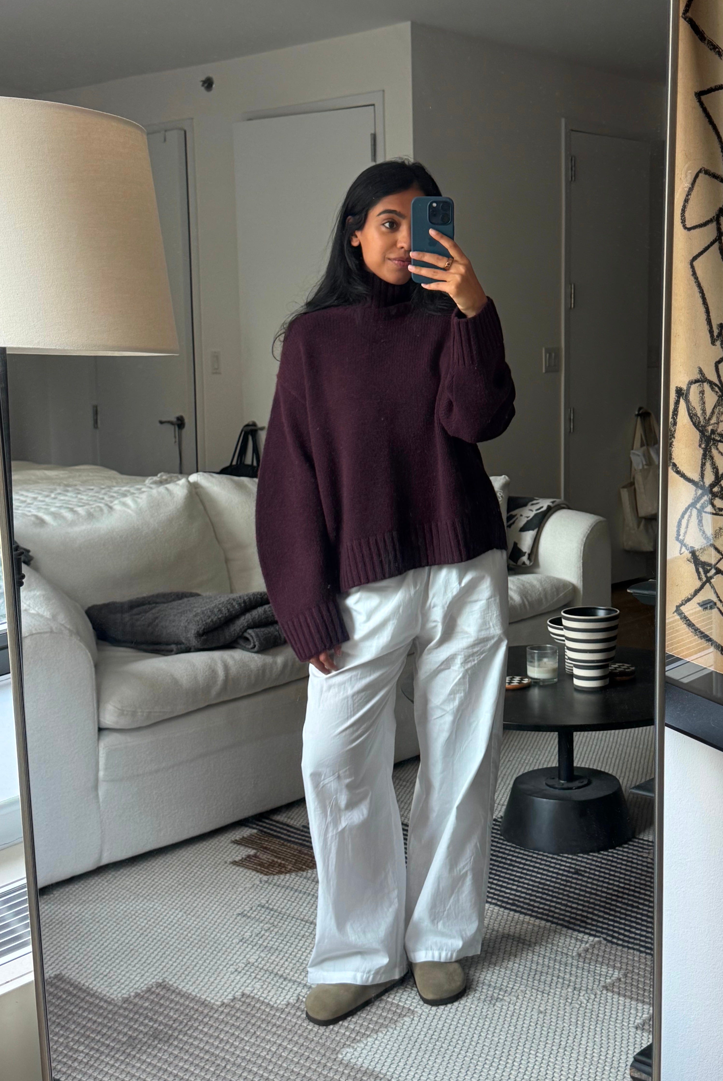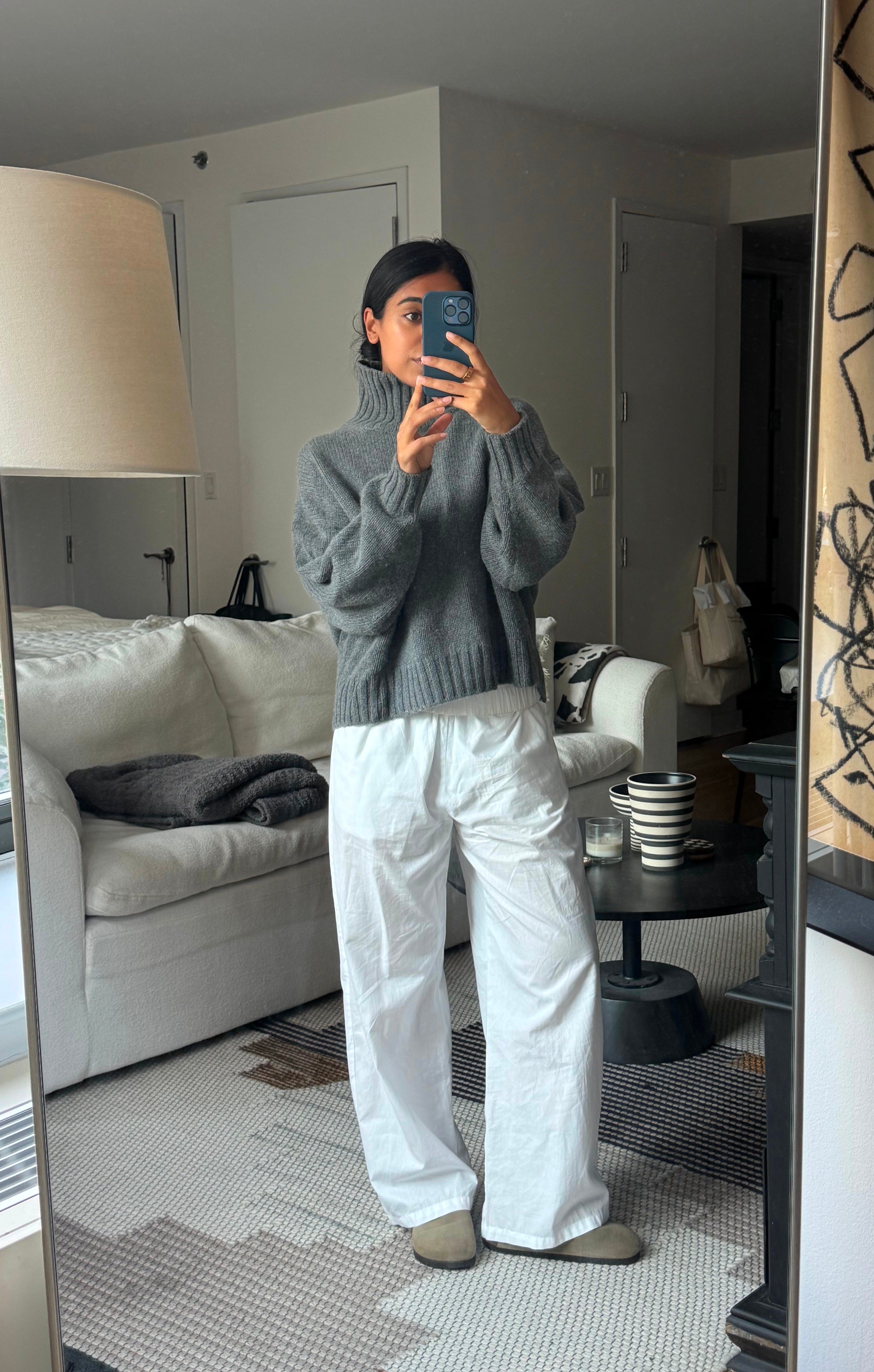 Another affordable favorite: I LOVE a charcoal knit, and this oversized cashmere crew by Quince is one I always come back to, whether it’s on a night in on the couch, or tucked into trousers.