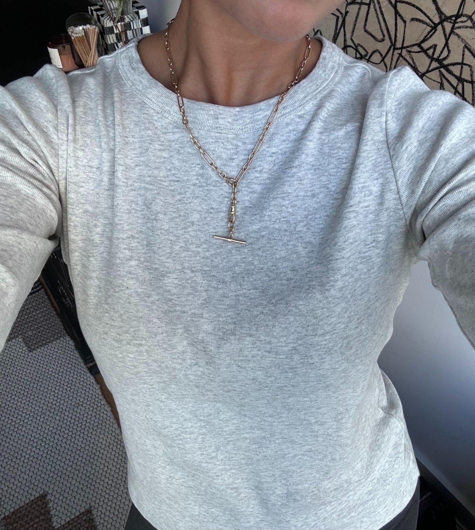 Didi Rose Handmade Fancy Chain: My newest piece! This chain is handmade by Benedicta—a Nigerian jewelry designer living in Georgia whose styles BLEW UP on jewelry TikTok late last year. It’s modeled off of a vintage trombone chain with a clip on each end that you can use to attach charms and adjust the length. The links are solid gold, which means it has a nice weight to it (though it also means that it’s more expensive than a hollow chain), and to me it really is the perfect size. I went into my search looking for something a little more substantial than the dainty necklace I wore before, but I never felt comfortable in gold pieces that were too chunky. To me, this feels like the perfect in-between—it’s still a statement, but not too much for everyday. I finished mine off with their T-Bar, which really turned it into a whole new piece! Mine is 18 inches long in 14 karat gold (though I probably would’ve been happy with 17 inches too!).